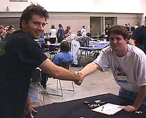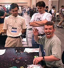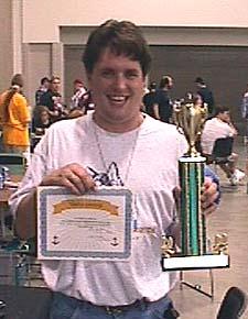 Kevin Walker defeated Mike and became the Grand Admiral 2000, here posing with the trophy and gift certificate from GeoHex (thanks KR!). |