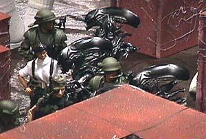 Back in the Miniatures/Board Game room, there was this large version of a battle in the Aliens universe. |