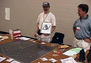 I stopped by a demo of Ken Burnside's new game, DeltaV. That is Eric Henry to the right, author of