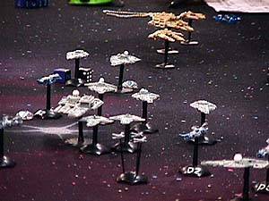 A fleet of Brakiri ships in a Babylon 5 Wars Tournament game. |